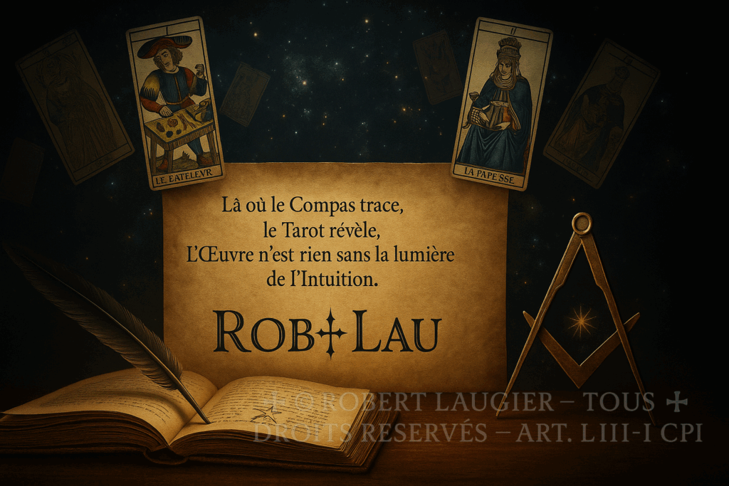 Dans la Tradition initiatique, le Tarot est un Rituel immobile, une Planche tracée sur la voûte de l’Âme. Il accompagne le Candidat depuis le Cabinet de Réflexion jusqu’à la Lumière, de l’Aleph à la Tau, du Profane à l’Adepte. Chaque lame devient une épreuve et une clef de voûte intérieure : le Bateleur initie le Verbe créateur, La Papesse enseigne le Silence fécond, l’Arcane XIII dissout l’Ego pour engendrer l’Être nouveau, et Le Monde accomplit la Réintégration. Ainsi, le Tarot se fait Colonne d’Harmonie, chemin de retour vers la Source, Parole alchimique du Grand Architecte de l’Univers.